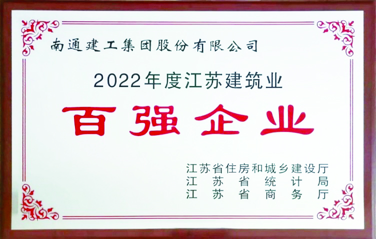 集团公司获评2022年度江苏建筑业“百强企业”
